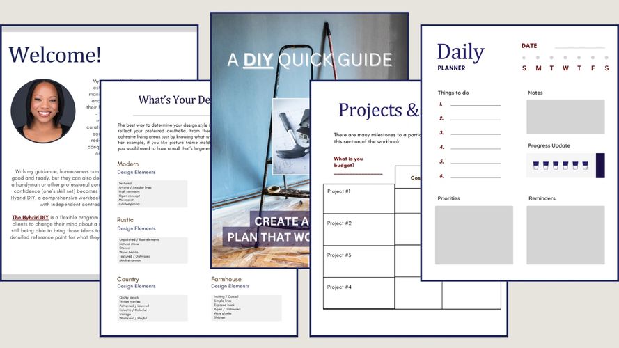 Accordingly, I've developed a proven framework The Hybrid DIY in order to assist homeowners and prospective home buyers in tackling DIY home improvement projects with ease - having the option to involve a contractor only as-needed. To get started, click the link below for a FREE quick guide to begin the journey of conquering your home improvement redesign goals on time and on budget!